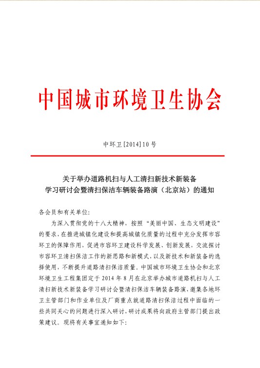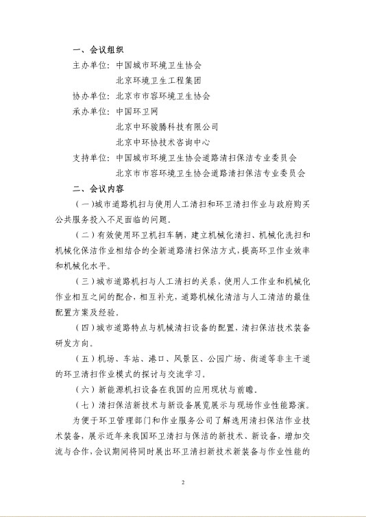 转发:中环协关于举办道路机扫与人工清扫新技术新装备学习研讨会暨清扫保洁车辆装备路演(北京站)的通知
